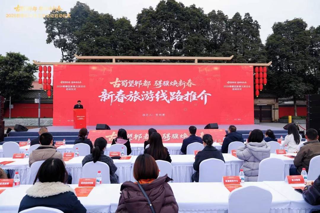 新春临近,年味渐浓。2月4日,成都市郫都区2026“古蜀望郫都·骐骥焕新春”新春文旅活动在望丛祠正式发布。郫都本地网红博主“雁鸿”以及酒店、旅行社、景区代表等共同按下启动装置。马年新春,郫都以“古蜀望郫都・骐骥焕新春”为主题,推出“1+10”新春文旅系列活动,通过缤纷活动点燃消费热潮,用浓浓年味邀市民游客共赴新春之约。