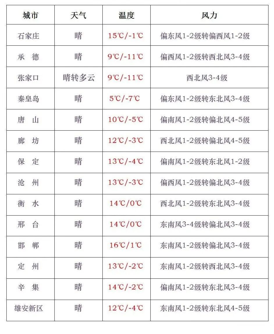 今天,河北各地晴暖相伴