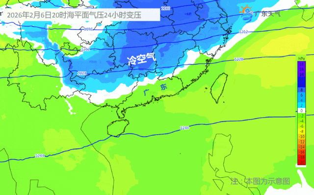 广东省气象台预计,2月5日广东大部多云,气温总体继续回升,早晚有轻雾或雾。北方中等强度冷空气2月6日傍晚前后开始影响粤北,2月6日夜间到7日早晨影响中南部,并伴有小雨,过程平均气温下降幅度:中北部下降6~9℃,南部下降3~5℃。