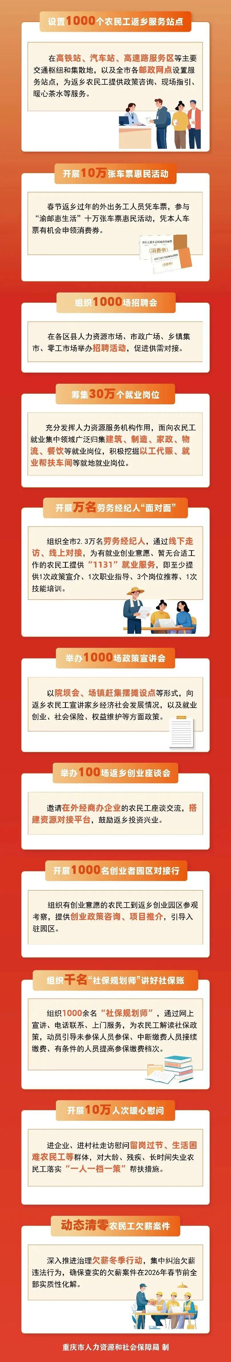 针对零工需求,多渠道挖掘用工信息,通过企业走访、劳务中介对接、平台企业联动等方式,及时发布零工求职招聘信息。围绕春节前后用工高峰,精准摸排企业需求,深挖就近就地就业岗位,提前储备适配外来务工人员的优质岗位资源。依托农民工综合服务中心、专项监测点等平台,动态跟踪农民工返乡返岗规模、时间节点及流向,精准研判就业趋势。春运期间,对成规模、同方向务工群体,积极提供包车、专列(包车厢)等“点对点”运输服务,打通返岗“绿色通道”。