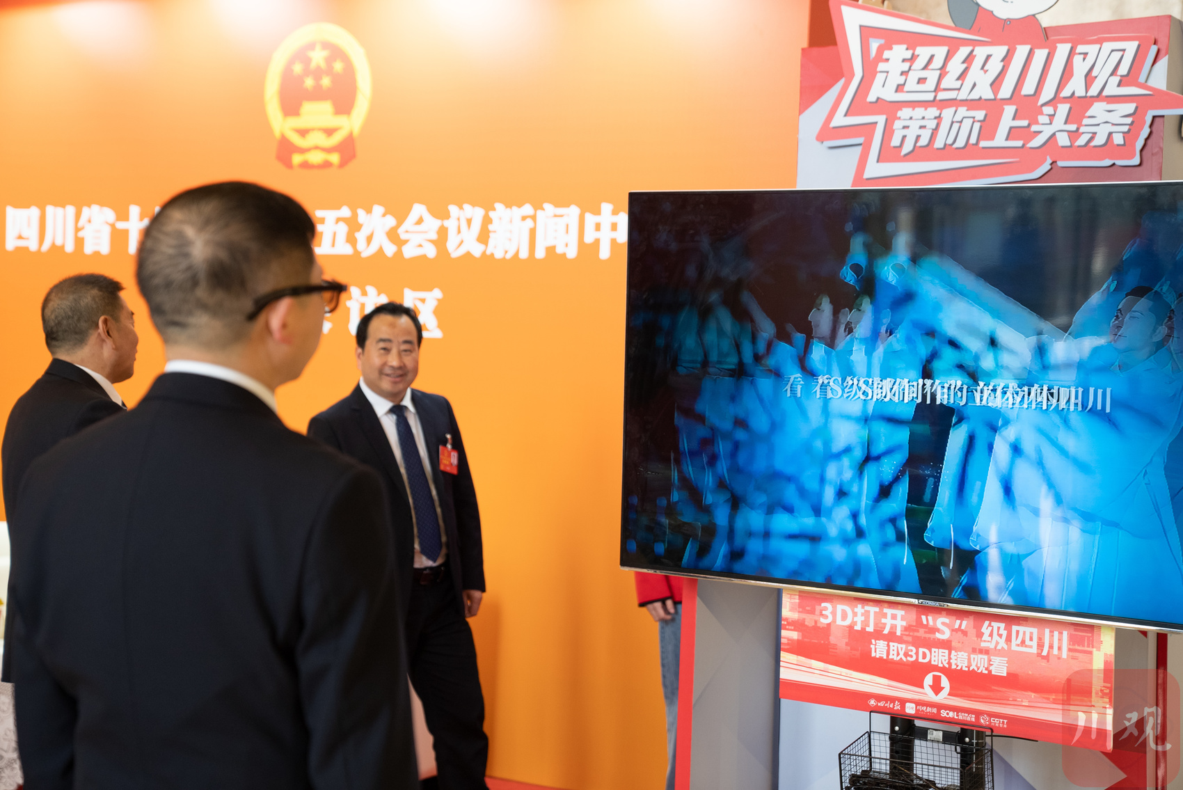 2月4日,四川省成都市锦江大礼堂外,一台循环播放3D空间视频的电视吸引了省两会参会代表的目光。戴上3D眼镜,立体影像跃然屏上,代表们纷纷驻足体验,通过这部四川首部3D空间视频,以全新视角解锁立体鲜活的四川。点此阅读:《这一次,我们用更立体的方式打开了“S级”四川!》