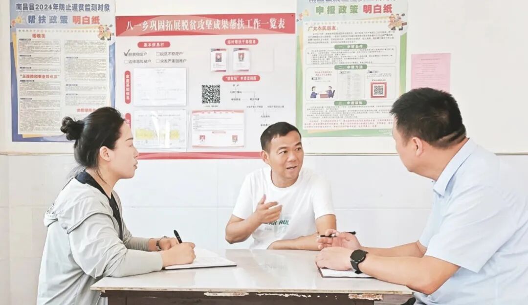 江西省南昌县塔城乡塔城村村干部正在研讨村民生活情况。图源:南昌县农业农村局