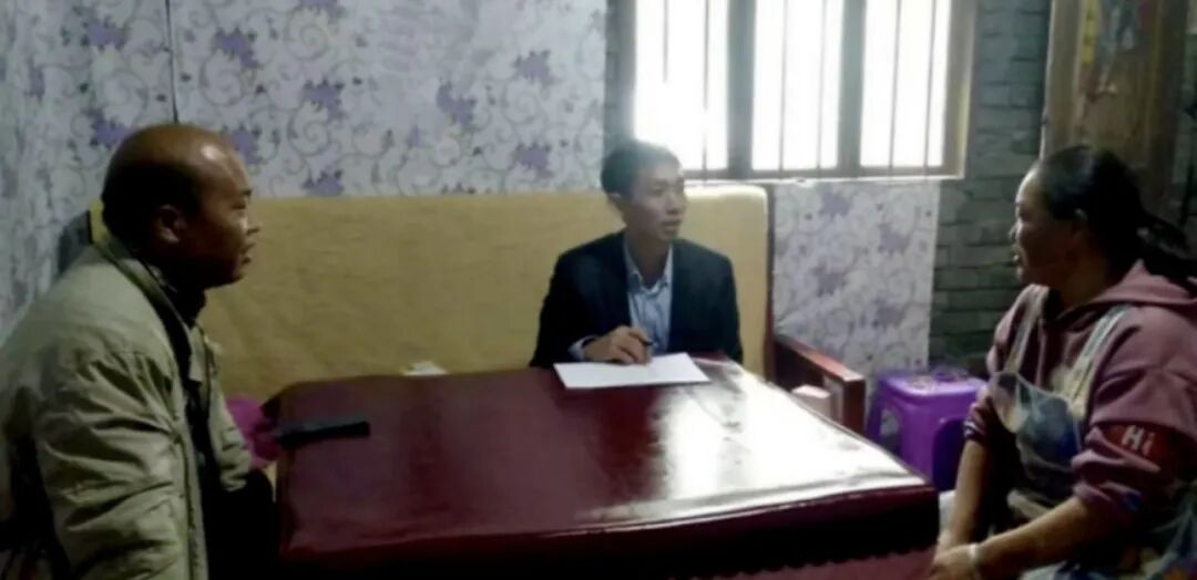 贵州省铜仁市郎溪村驻村工作队工作人员正在监测户家中了解情况。