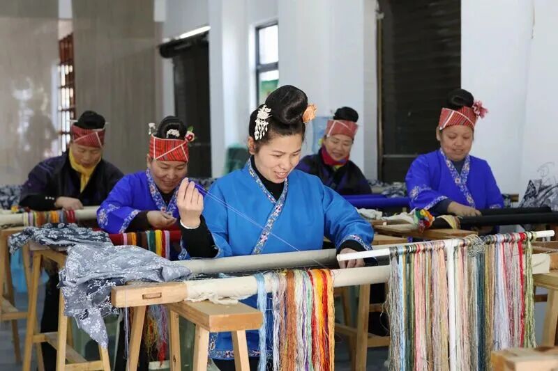 在贵州省黔东南苗族侗族自治州施秉县城关镇易地扶贫搬迁南官营社区一家苗绣企业生产车间,入职的社区居民在赶制订单产品。