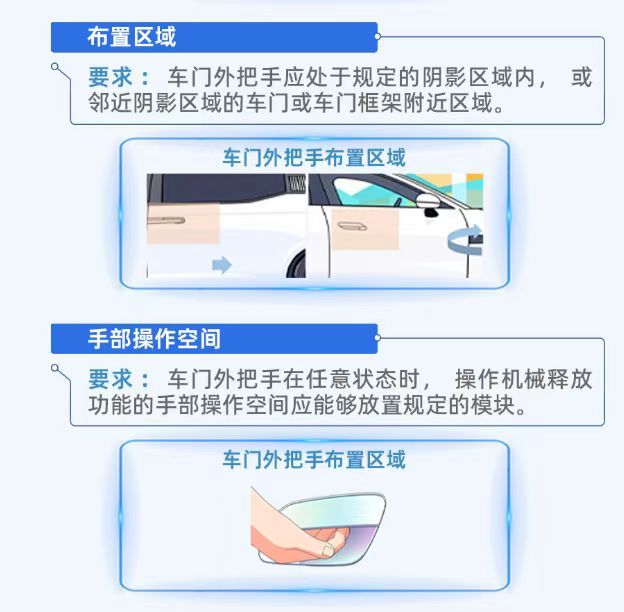 针对这一痛点,新发布的《汽车车门把手安全技术要求》作出了明确规范。标准规定,自2027年1月1日起,新申请型式批准的车型必须满足以下核心要求——