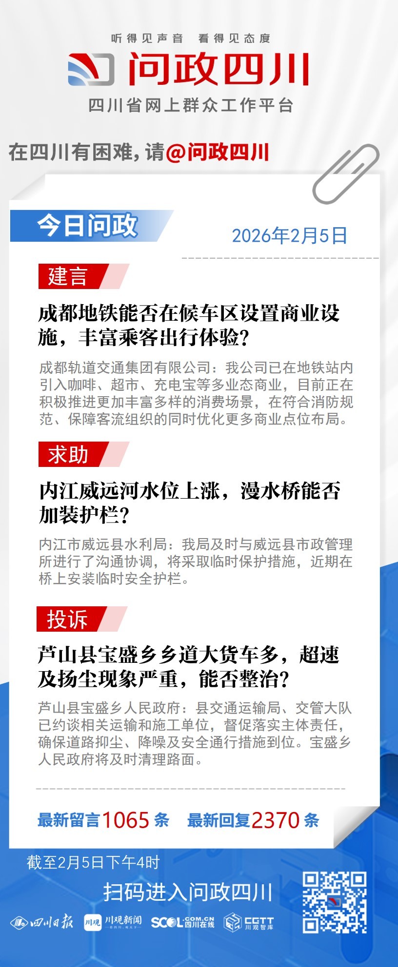 在四川有困难,找问政四川。如果您在四川遇到了操心事、烦心事、揪心事,请登录“四川省网上群众工作平台——问政四川”或拨打问政四川热线(028-96001)留言反映、求助或建议。我们将充分发挥平台的互动联系作用及舆论监督功能,第一时间传递民声,推动问题得以及时解决——听得见声音,看得见态度。