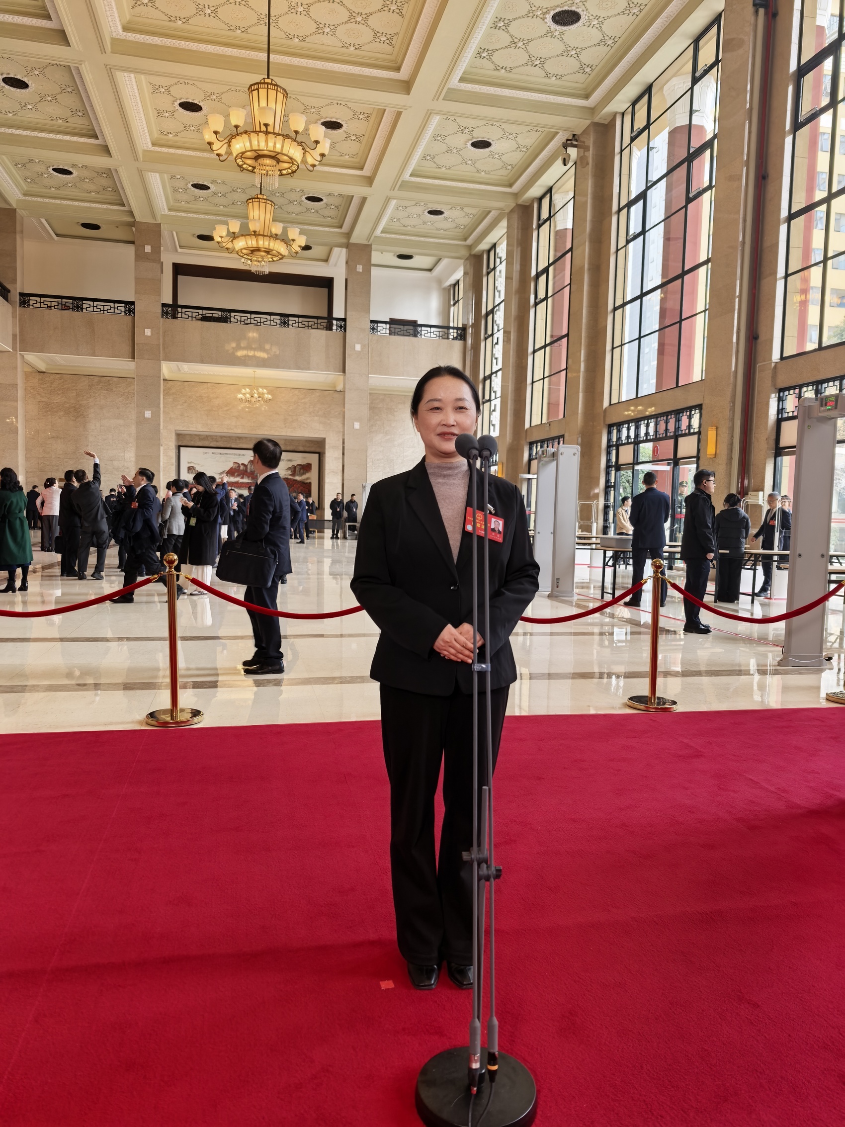 张蓉在四川省十四届人大五次会议第二场“代表通道”。(罗园 摄)