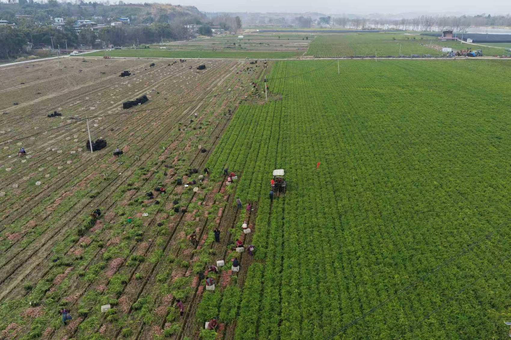 眼下,胡萝卜、圆根萝卜迎来集中采收期,预计总产量突破640万斤。“今年收成比往年都好!200多亩圆根萝卜亩产超1万斤,400多亩胡萝卜亩产也有8000斤,算下来又是一个丰收年。”成都市梁家家庭农场负责人梁强满脸笑容。