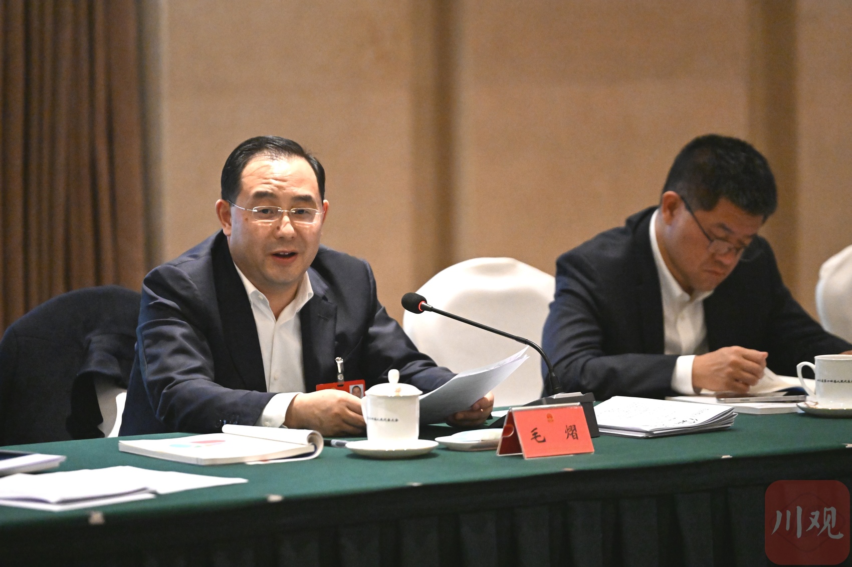 2026年2月5日,省人大代表毛熠(左)建议盘活城乡闲置资产,激活县域发展动能。