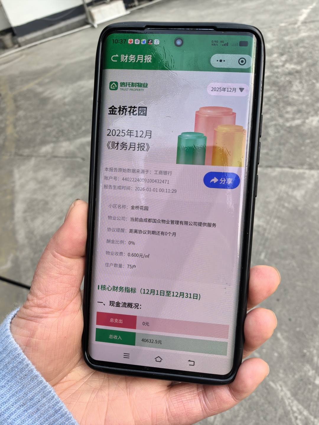 信托制物业实施后,金桥花园发生了质的变化。最直观的体现是物业费收缴率——从2024年度的不足50%到2025年底高达99%。