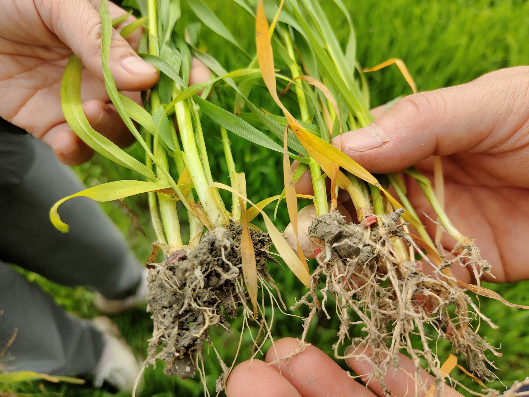 不同长势的麦苗对比。