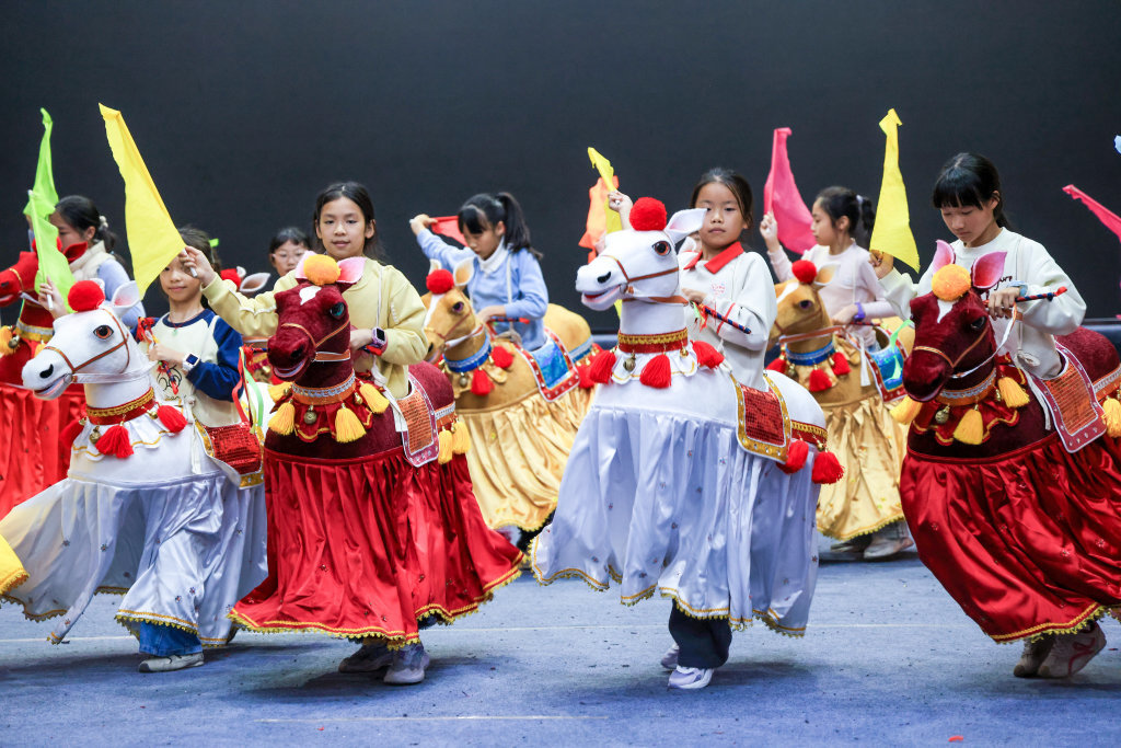 2月4日,在广东省潮州市饶平县青少年宫,少儿布马舞队队员在排练。