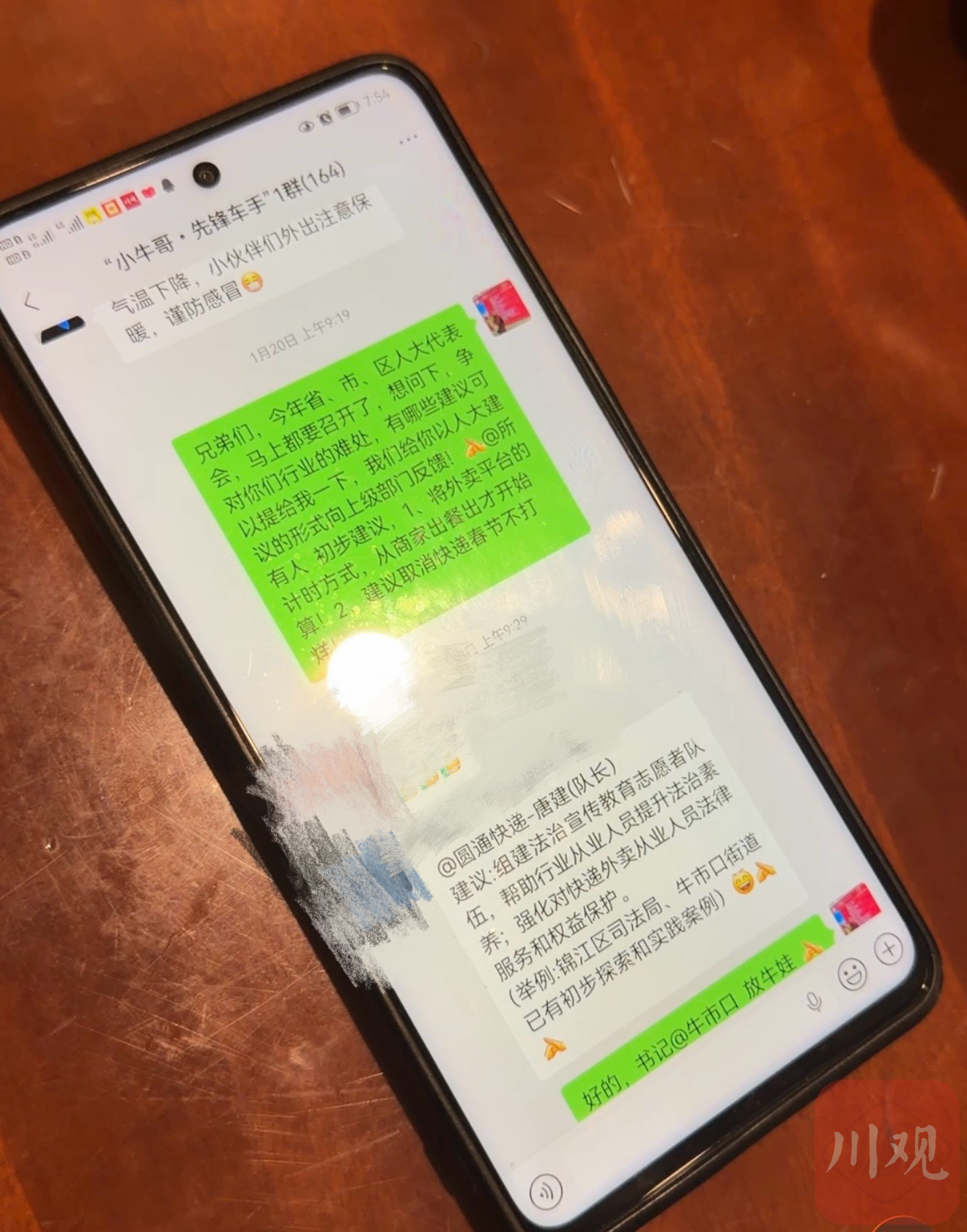 省人大代表、四川圆通速递有限公司工会主席唐建,手里有一部24小时不敢开静音的手机。随着省两会临近,微信里越来越多消息传来,很多消息来自他的“兄弟姐妹”——快递小哥、外卖骑手等。一条59秒的语音里,一个年轻的声音带着疲惫:“唐哥,老婆快生了,可春节排班表出来了,我可能又回不去……”