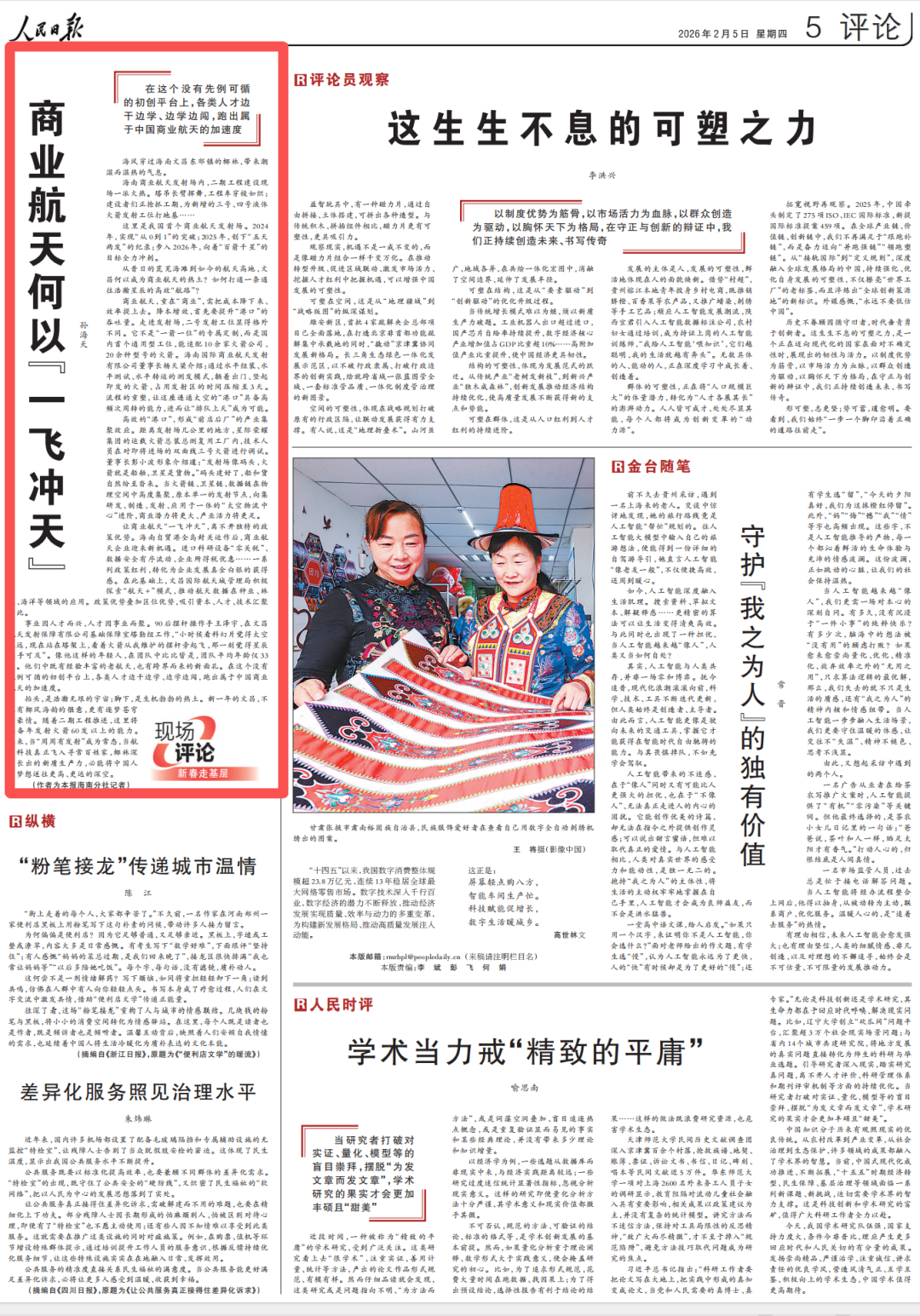 高效的“港口”,形成“前店后厂”的产业集聚效应。距离发射场几公里的地方,星际荣耀集团的运载火箭总装总测复用工厂内,技术人员在对即将进场的双曲线三号火箭进行调试。董事长彭小波形象介绍道:“发射场像码头,火箭就是船舶,卫星是货物。”码头建好了,船和货自然纷至沓来。当火箭链、卫星链、数据链在物理空间中高度集聚,原本单一的发射节点,向集研发、制造、发射、应用于一体的“太空物流中心”进阶,商业潜力将更大、产业活力将更足。