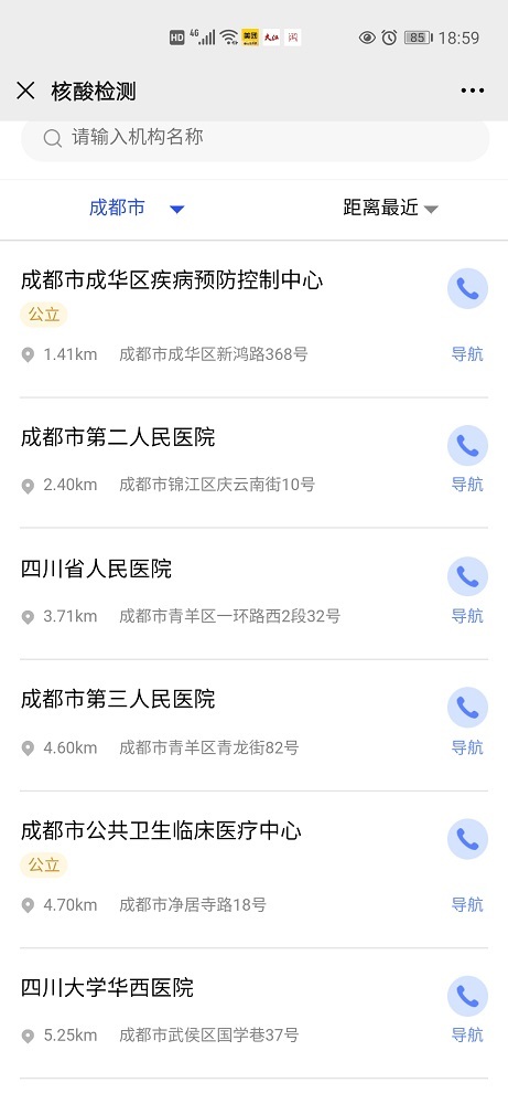 点击“核酸检测机构导航”可查找离自己最近的检测机构。