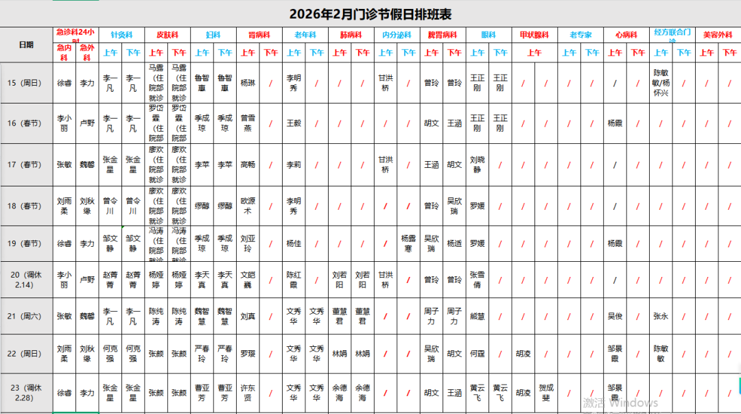 为方便您规划就诊行程,合理安排就医时间,各专科详细出诊安排已同步更新。您可通过以下官方渠道获取最新、最准确的出诊信息: