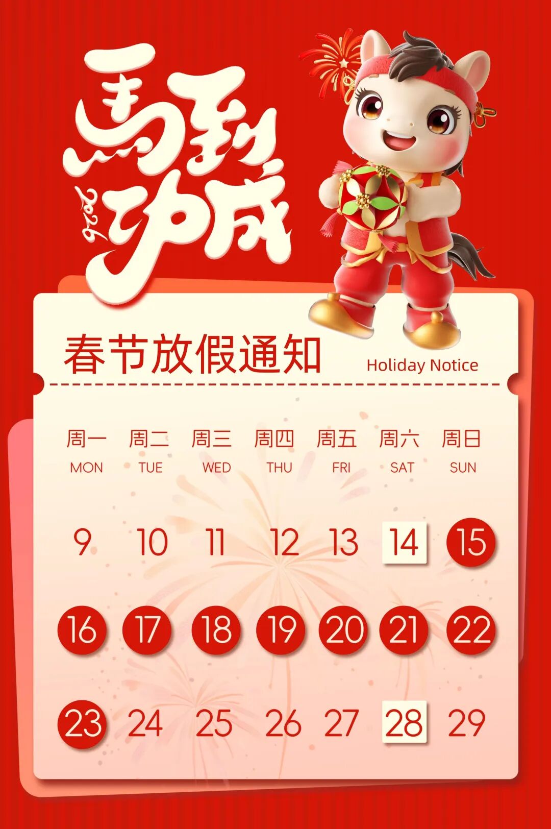 根据国家法定节日的安排,2026年春节连续放假9天,即2026年2月15日(星期日)至2026年2月23日(星期一),2026年2月14日(星期六)全院正常上班,按照星期x门诊安排坐诊。为确保医院正常诊疗秩序和安全稳定,为广大病友提供优质、高效、便捷、有序的诊疗服务,通用医疗成飞医院提前做好了节假日期间工作安排,现将节日期间门诊医生、医技检查安排表通知如下: