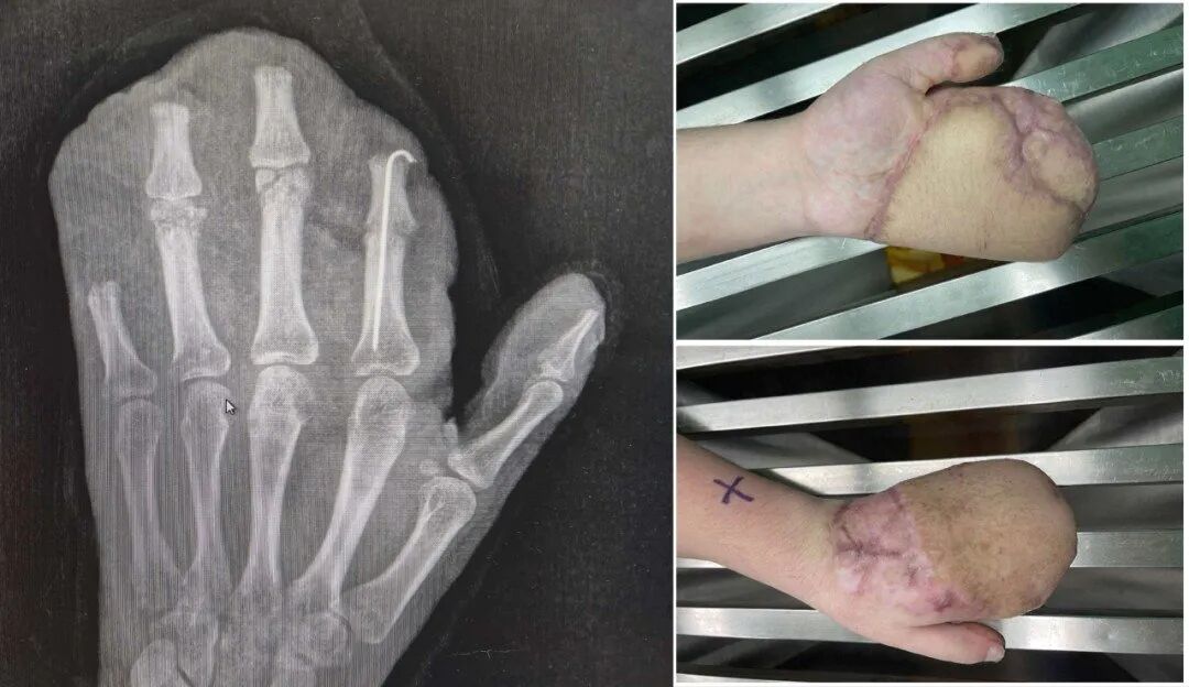 医院随即为小王做了手术,术中,医生们完成了彻底的清创,修复了骨折、断裂的肌腱与神经。