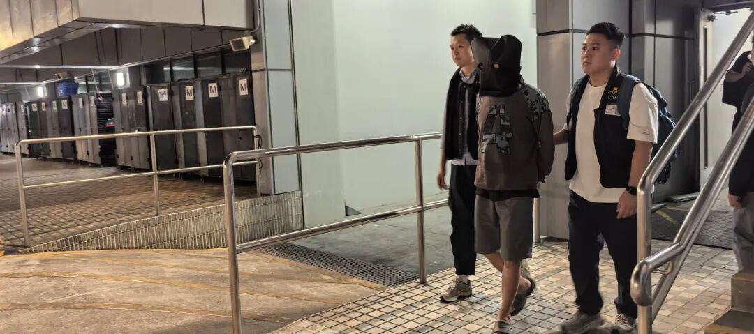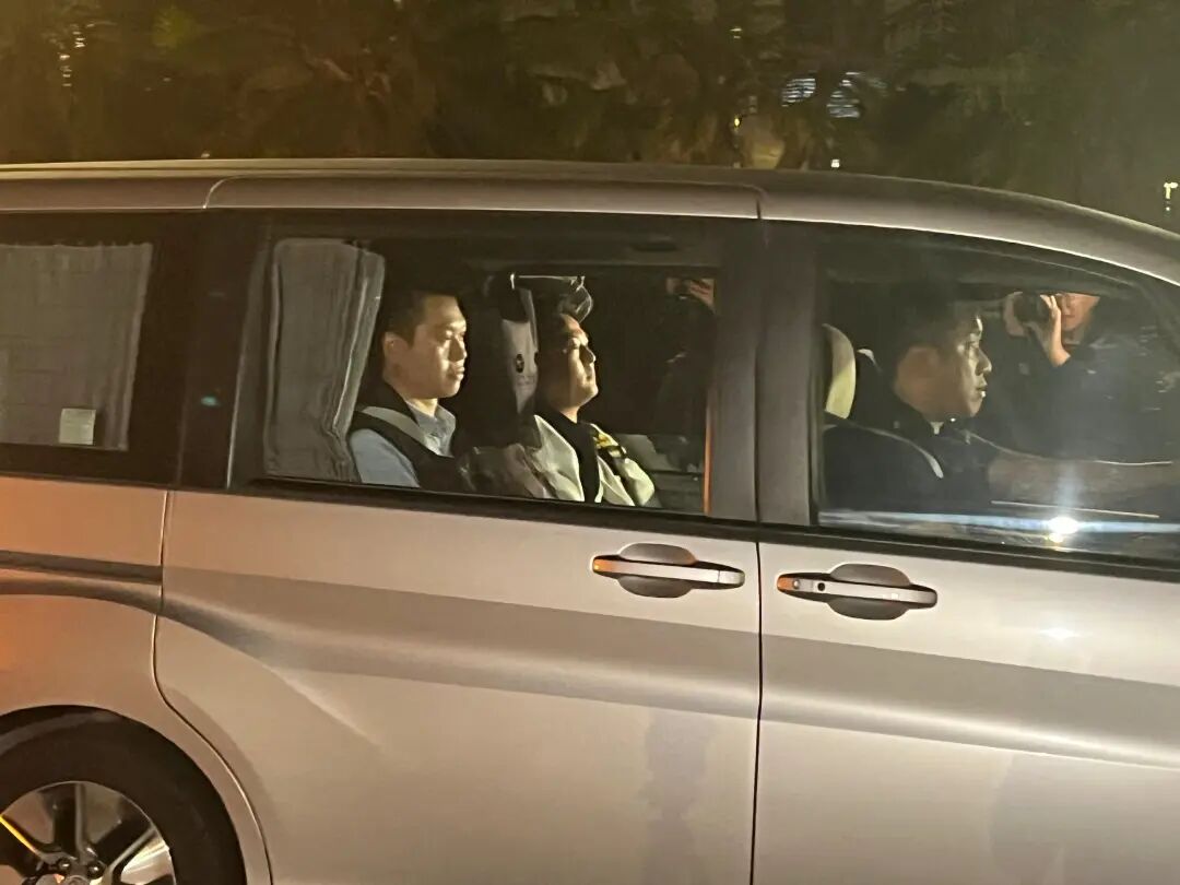据悉,嫌疑人从泰国被遣送抵达香港后,戴着黑色头套,身穿短裤拖鞋,最后被香港警方送上一辆银色七人车押解离开机场。