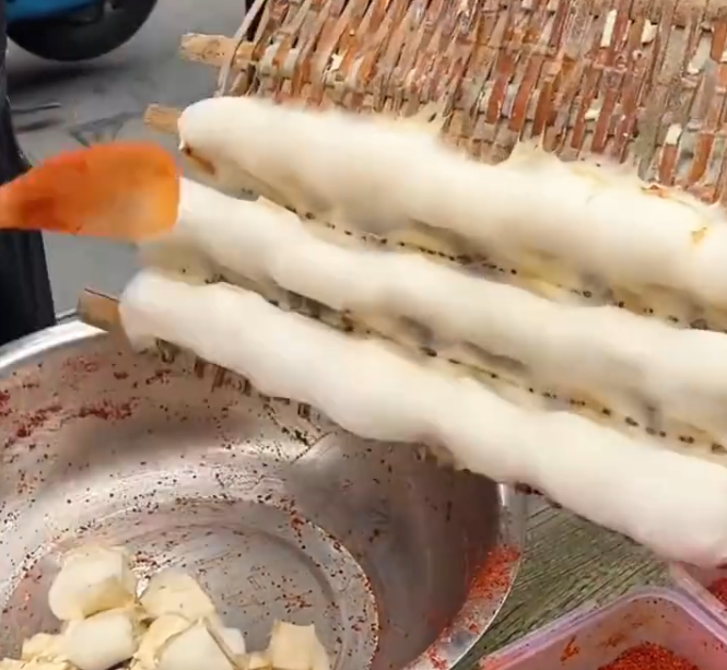 视频中,摊主的操作流程极具观赏性:竹板上是整齐码放的长满白霉的豆腐,摊主用勺子将豆腐分割后逐一装入盆中。之后倒酒杀菌,在罐中放入辣椒粉、十三香、食用盐等调料摇匀,再倒入盆中使其均匀包裹每块豆腐,最后放入罐中。