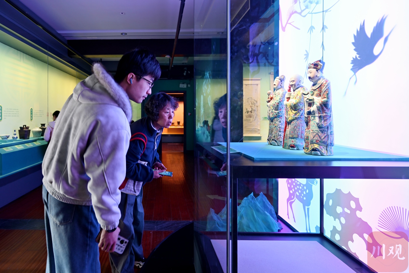 记者在现场看到,展览以吉祥文化为主题,设“福泽绵长”序章、三大主体单元及“山海同春”尾章,通过文物铺展中华吉祥文化长卷,还将广彩与蜀绣等非遗技艺并置,展现天府与广府文化的和而不同,更融入沉浸式互动、祈愿墙等设计,让市民深度参与体验。策展人樊博琛表示,展览核心创新是构建完整阐释框架,体系化解码吉祥文化,让市民读懂文物背后的文化逻辑与精神追求。成都武侯祠博物馆馆长蒋建义则强调,吉祥文化的美好愿景与当代核心价值观一脉相承,希望以文物为桥,让成都市民感受传统魅力的同时,增强文化自信与民族自豪感。