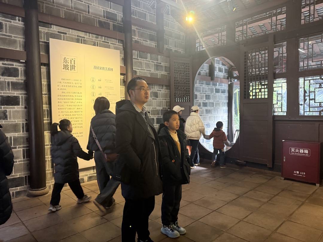 来自成都的李先生正和儿子一同了解苏东坡生平