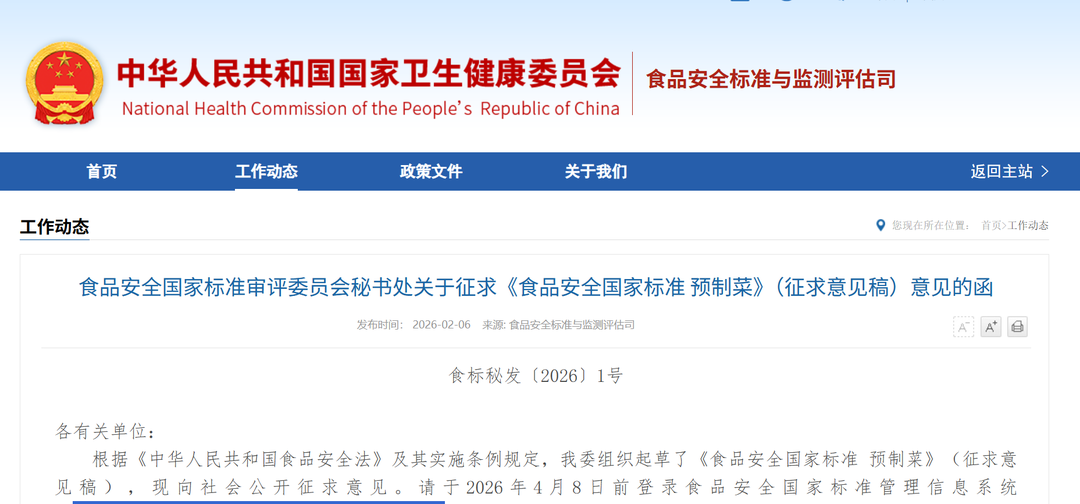 2月6日,国家卫生健康委发布《食品安全国家标准 预制菜(征求意见稿)》(以下称为标准),面向社会公开征求意见。标准直面行业痛点与消费者关切,从定义界定、添加剂管控到营养保留、标签标示等多个维度作出明确规定。