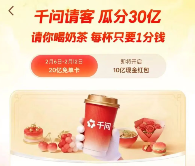 2月6日,阿里千问APP“春节30亿大免单”正式上线,发起奶茶攻势,请全国人民用AI一句话免费点奶茶。据@千问 刚刚发布消息:活动上线5小时下单超过500万单。