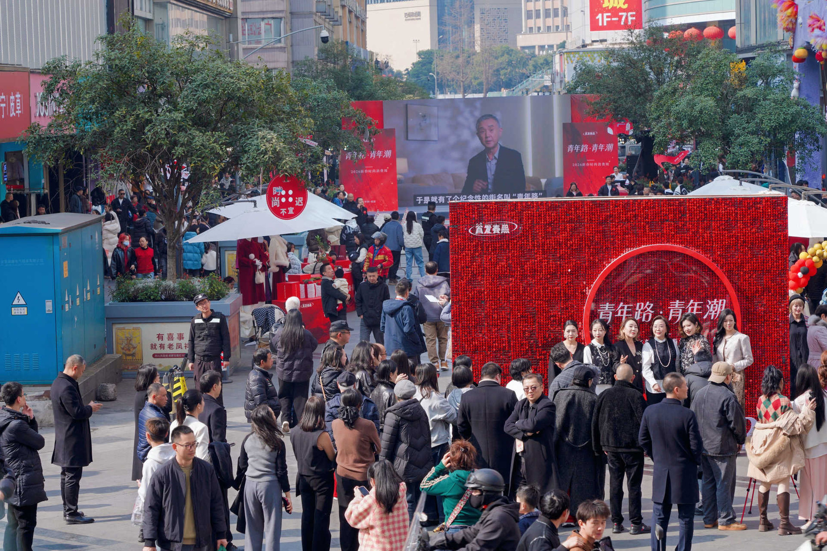 一系列焕新行动在当天同步展开。“青年路·青年潮”先锋品牌服饰发布,10位品牌主理人携标志性作品登场。在“朱紫褕”国风品牌主理人朱禹龙看来,青年路不仅是该品牌在西南地区的发展根基,更是宝贵的灵感来源。“这里的服饰变迁与市井烟火气,让我们能精准把握川渝消费者的真实需求,让设计既有东方韵味,又贴合现代生活。”