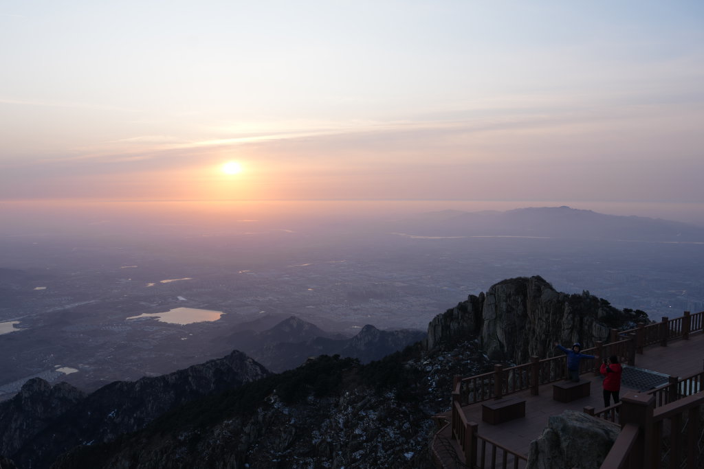 2月6日,游人在泰山日观峰景区观赏日出。