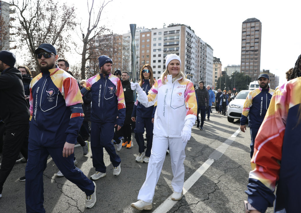 当地时间2月6日,2026年米兰-科尔蒂纳冬奥会火炬在意大利米兰传递。