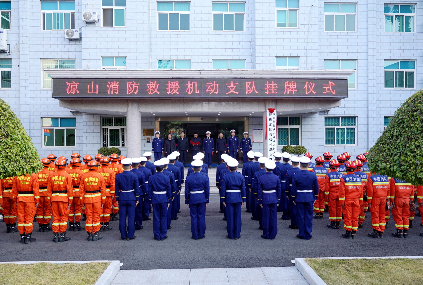 据了解,新挂牌成立的凉山消防救援机动支队,主要担负凉山、南充、攀枝花、泸州、广安等区域的森林火灾、地质灾害、洪涝灾害、雨雪冰冻灾害等综合应急救援任务,对于构建“全灾种、大应急”救援格局,守护人民生命财产安全和生态资源安全具有重要战略意义。