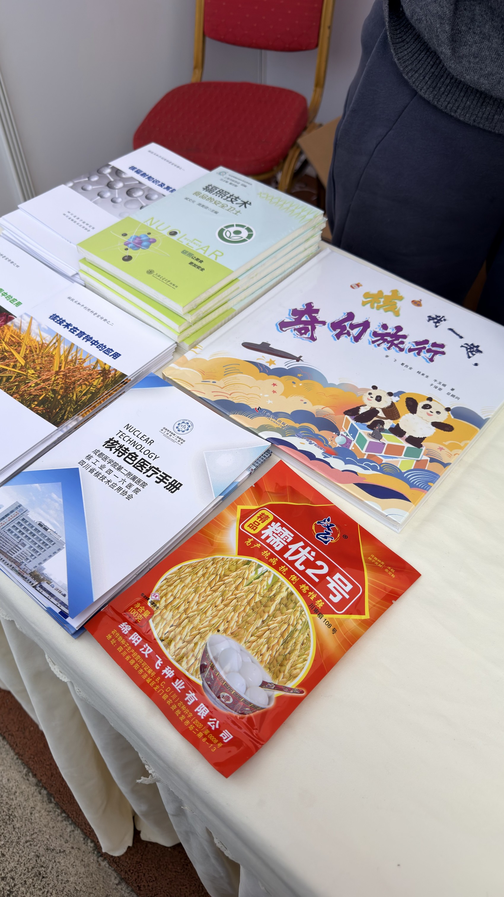 除了辐照食品外,展台上还摆放着玉米、水稻等种子。“核技术也广泛应用于育种技术、特色医疗等领域。”邓丽娟说:“大家谈‘辐’色变,往往是因为不了解。我们参加这类活动,就是想科普辐照技术,消除对辐射的偏见。”
