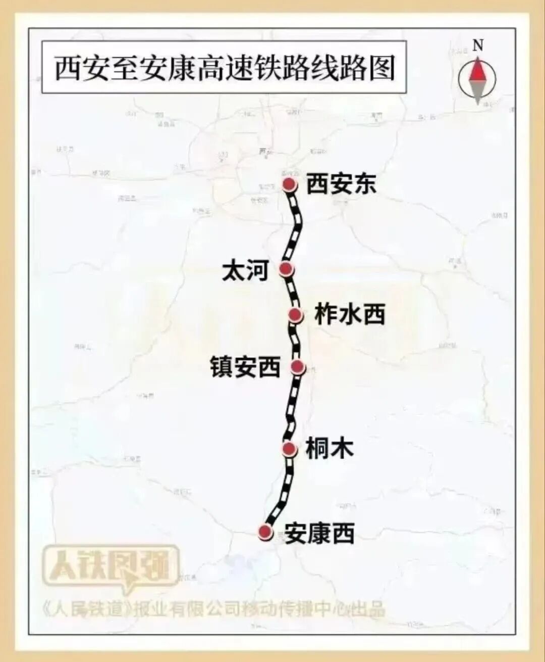 设计时速350公里,同步投用,向南至安康,西安→安康约1小时内。