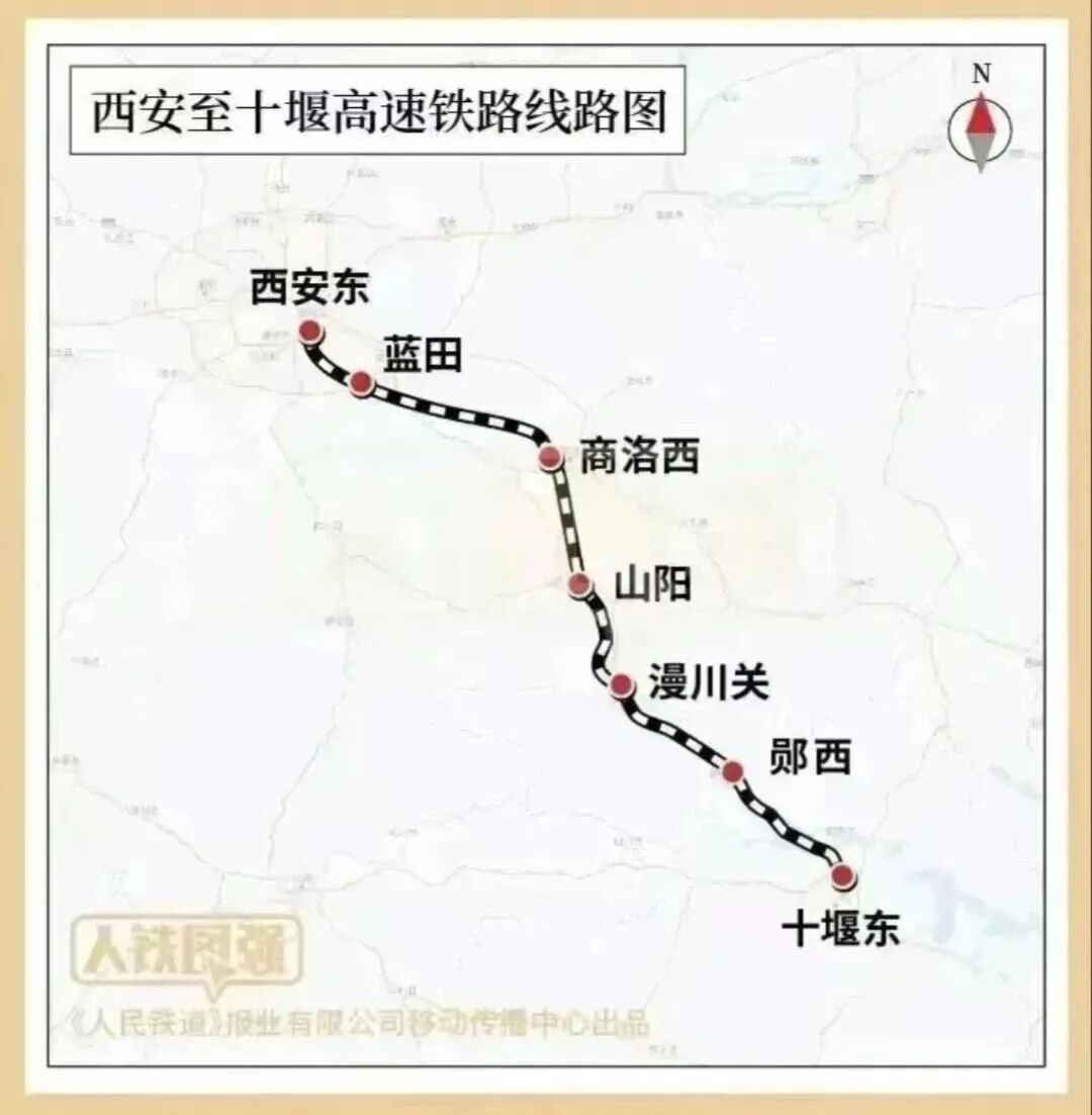 设计时速350公里,与东站同步开通,向东连通十堰、武汉,西安→武汉约2.5小时。