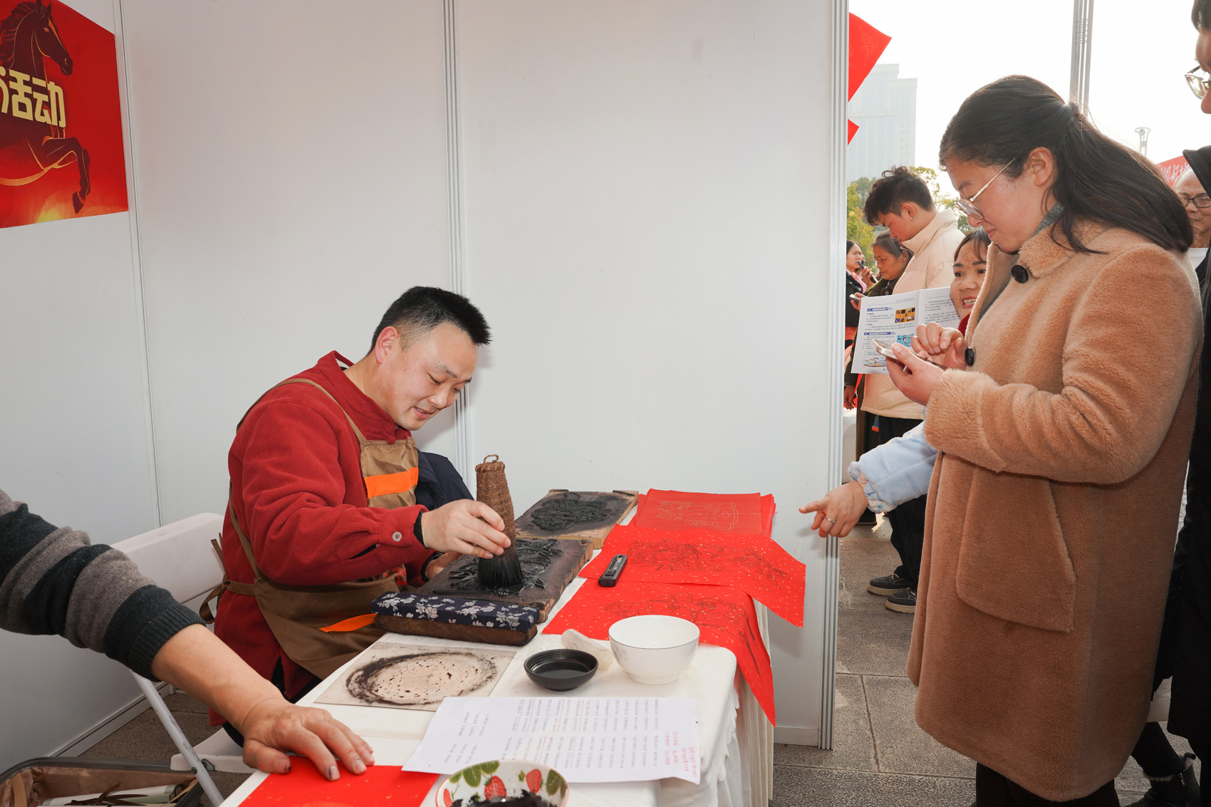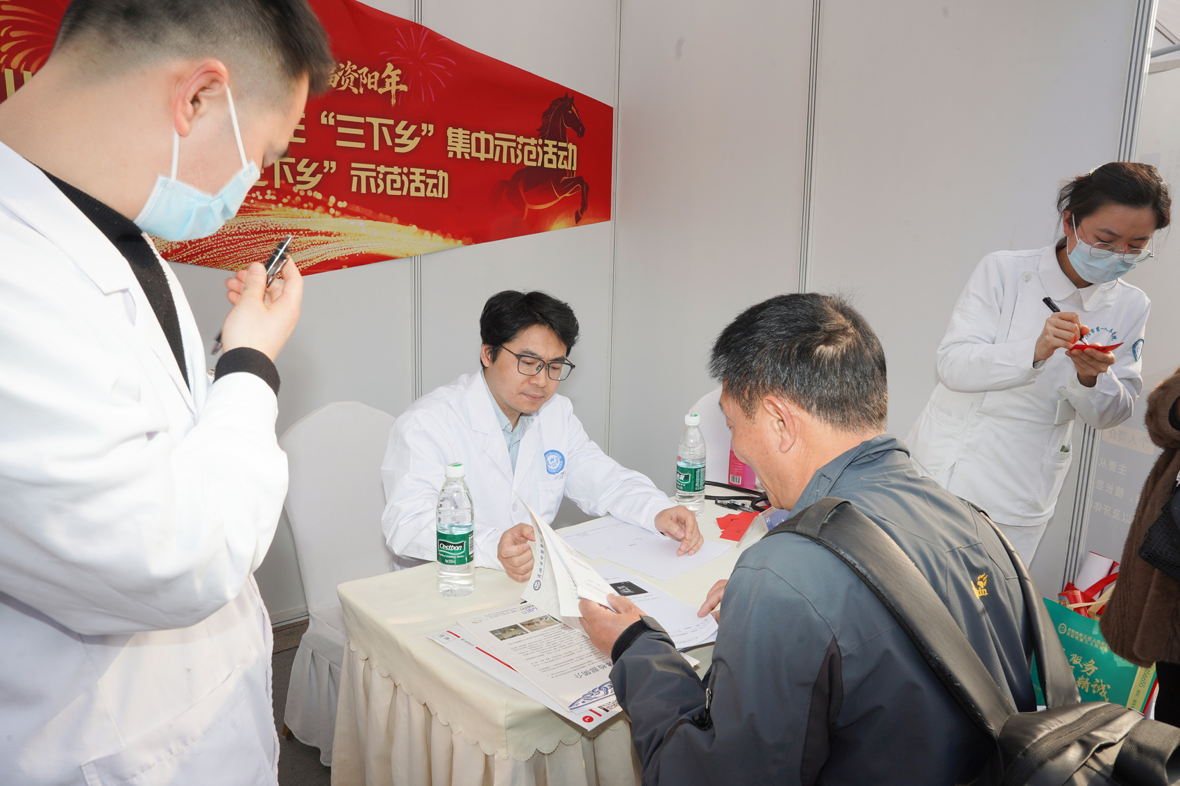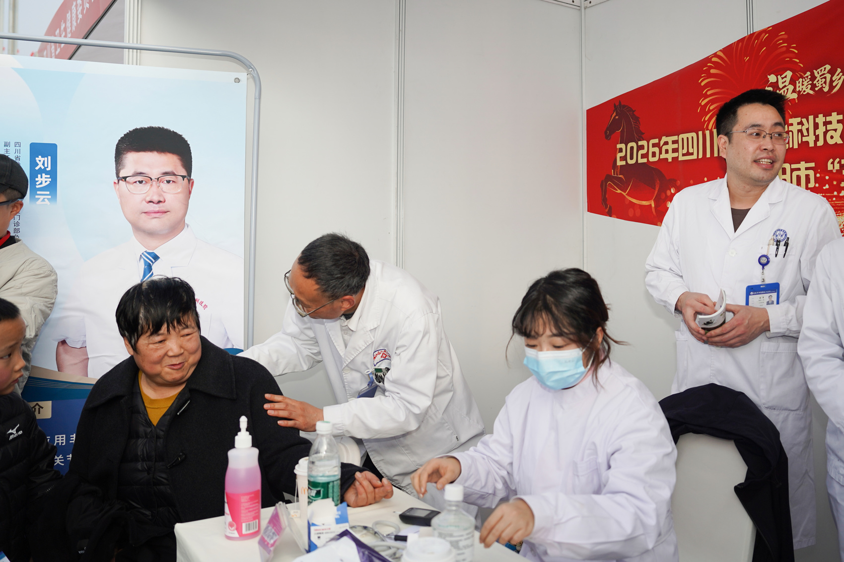 镜头深入展区与人群,记录下最生动的服务瞬间与最火热的活动现场。义诊台前的细致问诊、非遗技艺的巧手展示、手写春联的笔墨送福,与现场涌动的人潮、洋溢的笑脸交相辉映。