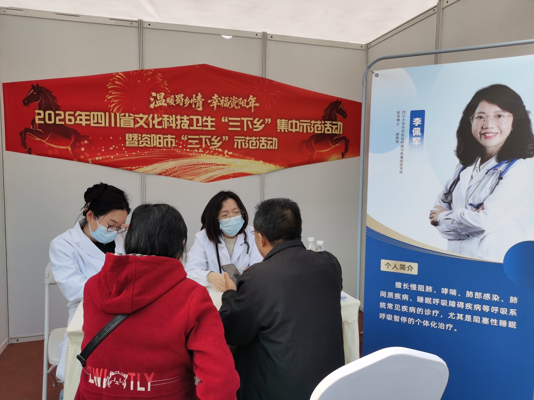 2月6日下午,资阳市雁江区市民广场上人头攒动,格外“闹热”。当天,2026年四川省文化科技卫生“三下乡”集中示范活动暨资阳市“三下乡”示范活动在雁江举行,来自华西医院、省人民医院、省妇幼保健院等机构的10名专家坐成一排,桌前围满了从四处赶来的乡亲。