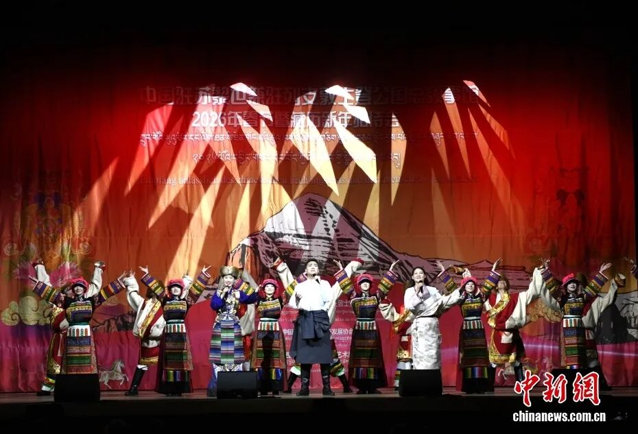 当地时间2月3日晚,中国驻苏黎世兼驻列支敦士登公国总领事馆在瑞士苏黎世举办2026年春节暨藏历新年招待会。西藏阿里地区象雄艺术团献上精彩表演。