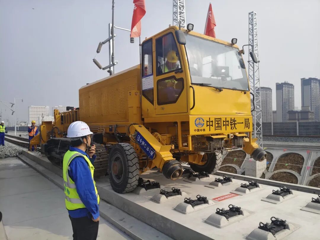 施工方依托轨道工程运输管理智控平台,采用国内领先的机械化自动化铺轨设备,克服了长隧道连续作业、冬季低温施工等困难。创造了单日23小时铺设26公里的施工纪录,确保全线铺轨任务安全高效完成。