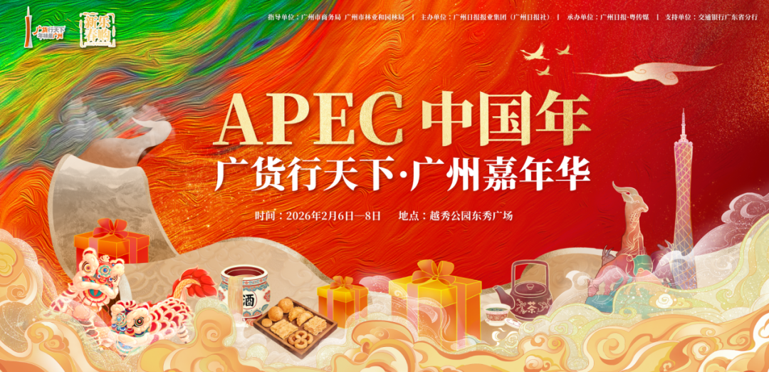 2026年2月6日— 2026年2月8日,“APEC中国年·广货行天下广州嘉年华”在广州越秀公园举办,为广大市民打造沉浸式的全景消费体验。本次活动由广州市商务局、广州市林业和园林局指导,广州日报报业集团(广州日报社)主办、广州日报·粤传媒承办、交通银行广东省分行支持。