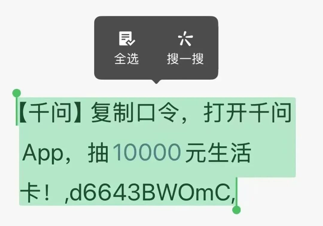 春节前夕,AI应用的“红包大战”进入白热化。2月6日,继微信屏蔽元宝和千问的红包链接后,元宝与千问已经将红包裂变分享的方式改为了复制口令形式。随后,用户可以通过复制口令并发布到微信的方式进行红包传播。