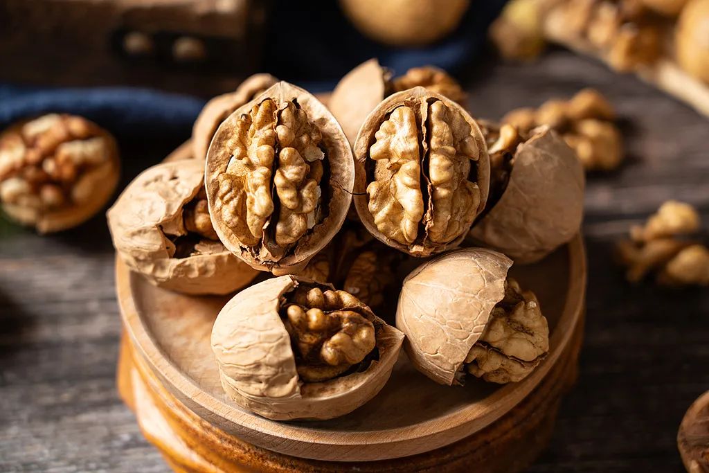 在坚果中,核桃的α-亚麻酸含量较为优秀。α-亚麻酸具有神经保护作用,可以减轻焦虑症状,缓解情绪紧张、减轻压力。