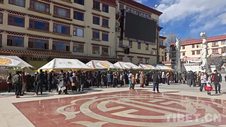 中国西藏网讯 2月4日,四川省甘孜藏族自治州理塘县高城镇格萨尔广场化身年货海洋。红灯笼高挂,中国结摇曳,一字排开的摊位上琳琅满目,涌动的人潮中,背着背篼、手提袋的农牧民们穿梭选购,欢声笑语交织成一片暖意融融的春节前奏。