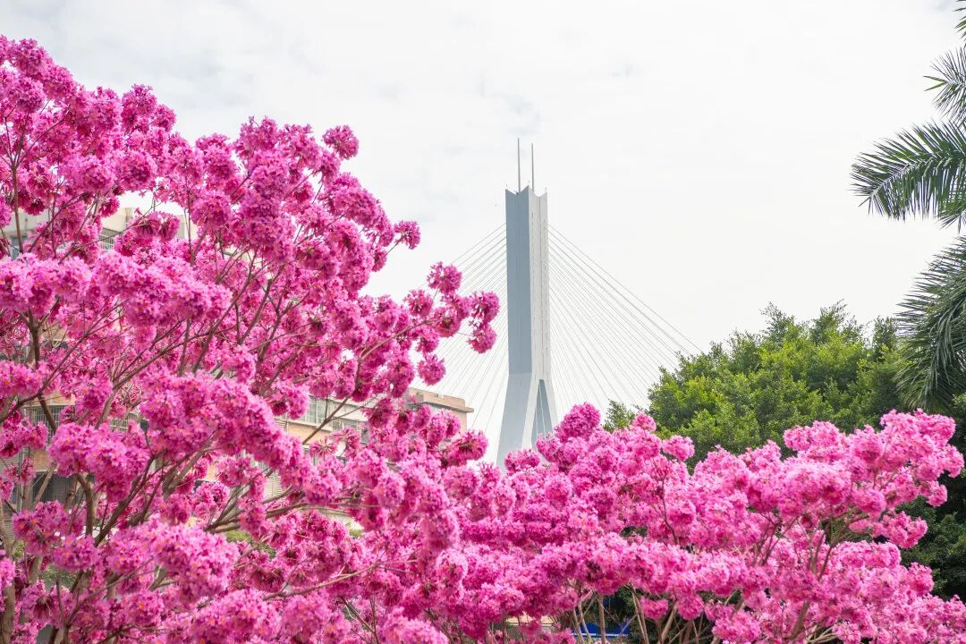荔湾区沙涌地铁站的粉花风铃木
