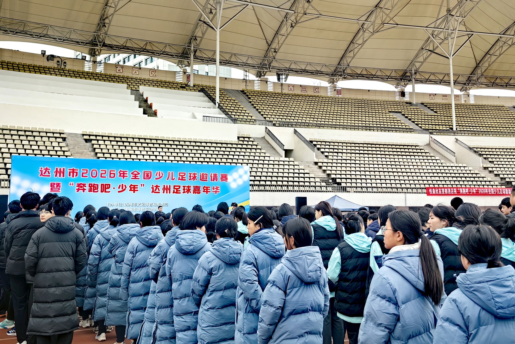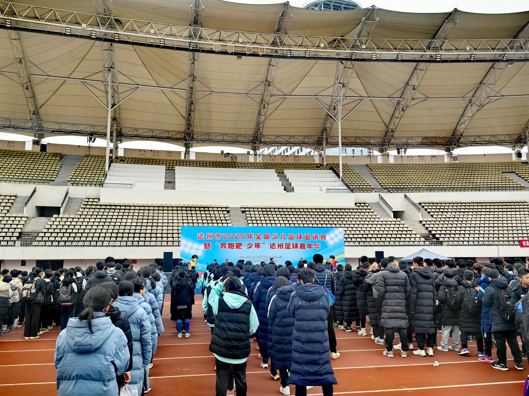 2月7日,达州市2026年全国少儿足球邀请赛暨“奔跑吧·少年”达州足球嘉年华在达州市体育中心开赛,来自河南、山东、甘肃、陕西、贵州等全国10余个省市90支球队超1200名少年球员将参加为期五天的比赛。