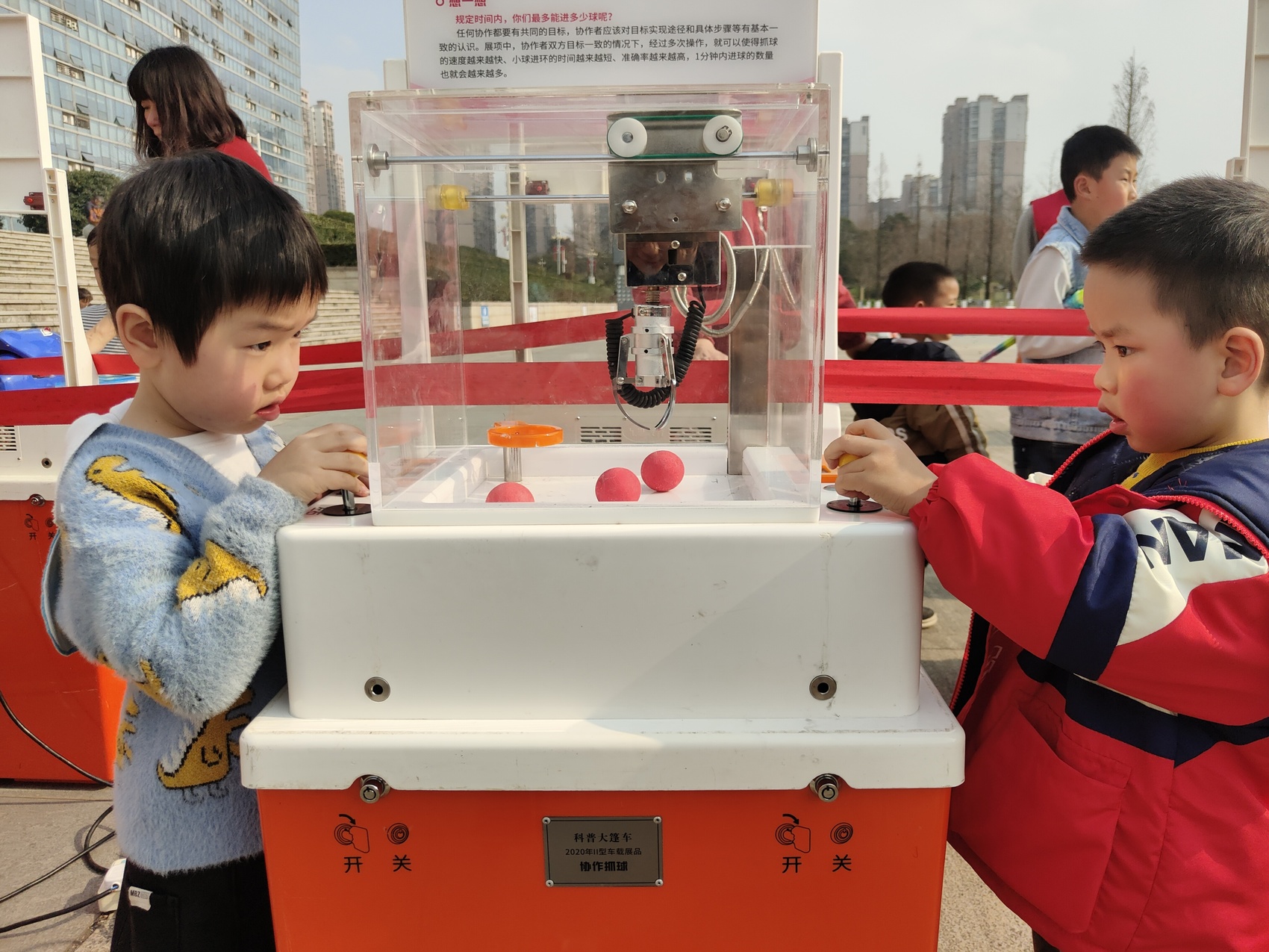 “合作成功!我们来击个掌吧。”在“科技大赶场”展区,两个小朋友在科技大篷车的一台科普设备前,共同操作机械臂抓起一颗小球并投进框后,开心地击掌。四川省民族科普服务中心工作人员介绍:“互动体验可以直观地感受科学的魅力,让科技更接地气、更贴近生活。”
