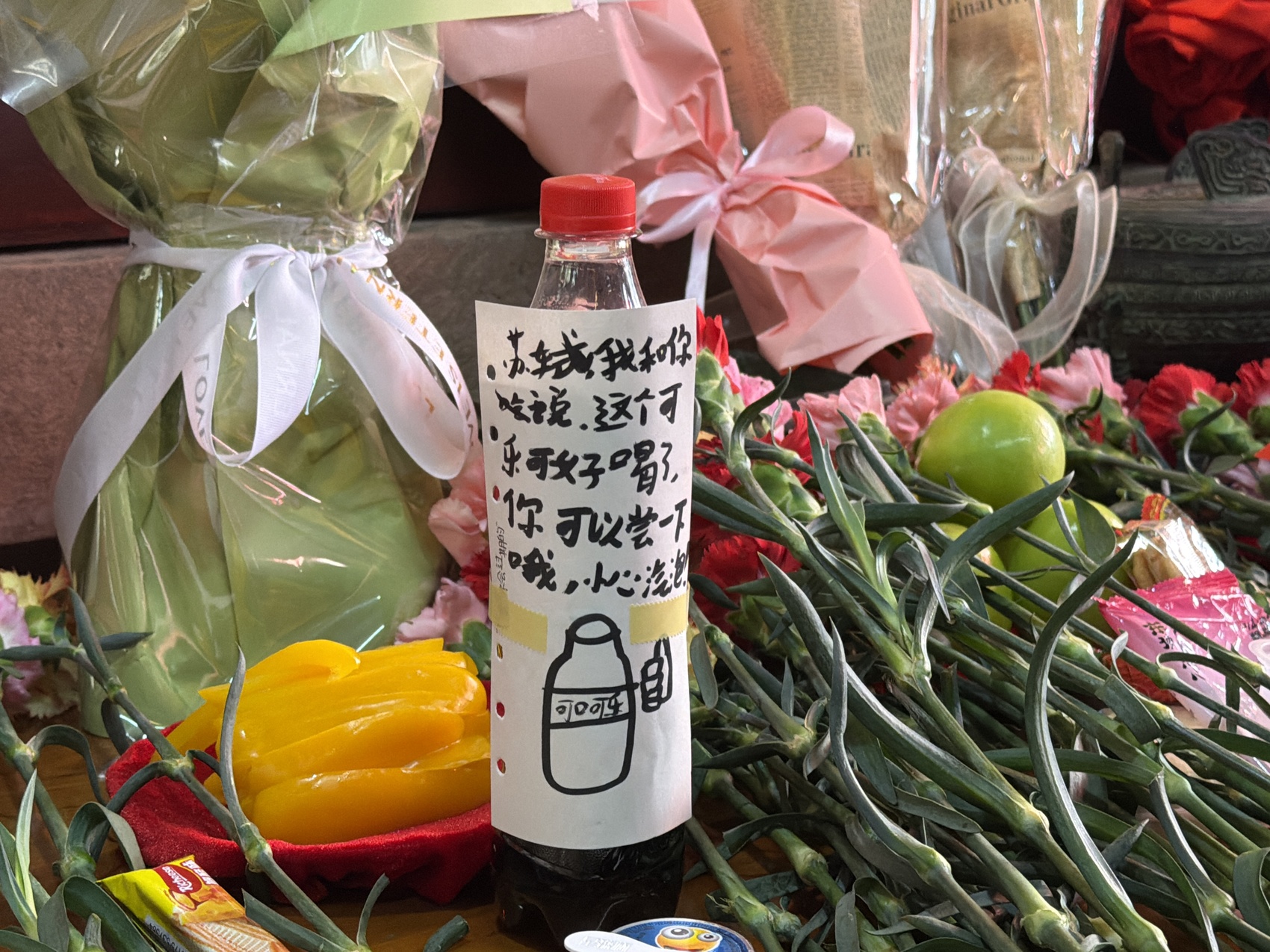 袁菲阳的礼物并非个例。今年的“寿苏会”上,年轻人带来的“寿礼”充满创意与温度:一瓶贴着“这个可乐可好喝了你可以尝一下”字条的可乐、一块精心包装的巧克力和饼干、一张明信片、一包荔枝味的软糖……这些当代年轻人喜爱的东西,成了连接古今的温情纽带。