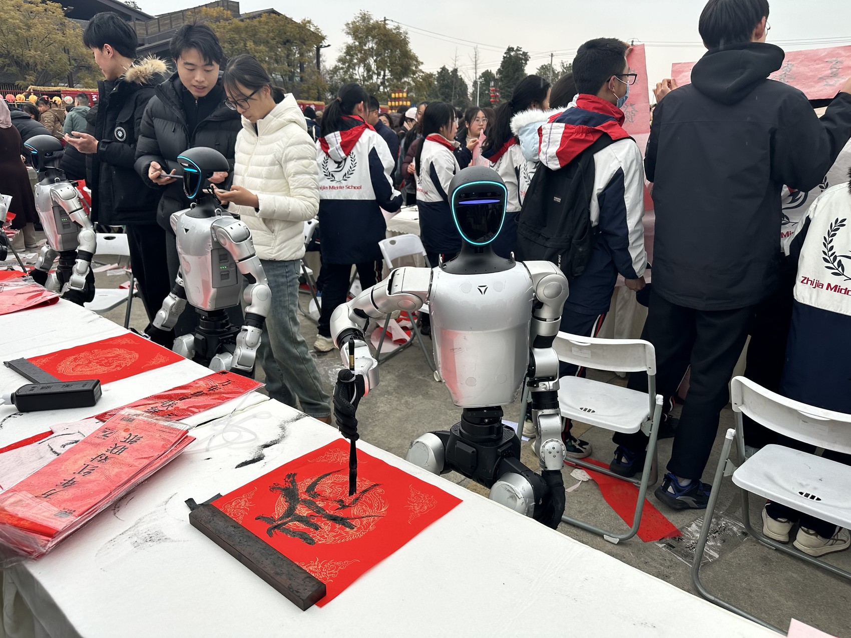 2月7日,“千联竞秀·万福满城”成都·青白江写春联送祝福活动在城厢古城举行,宇树人形机器人现场挥毫泼墨,引起关注。