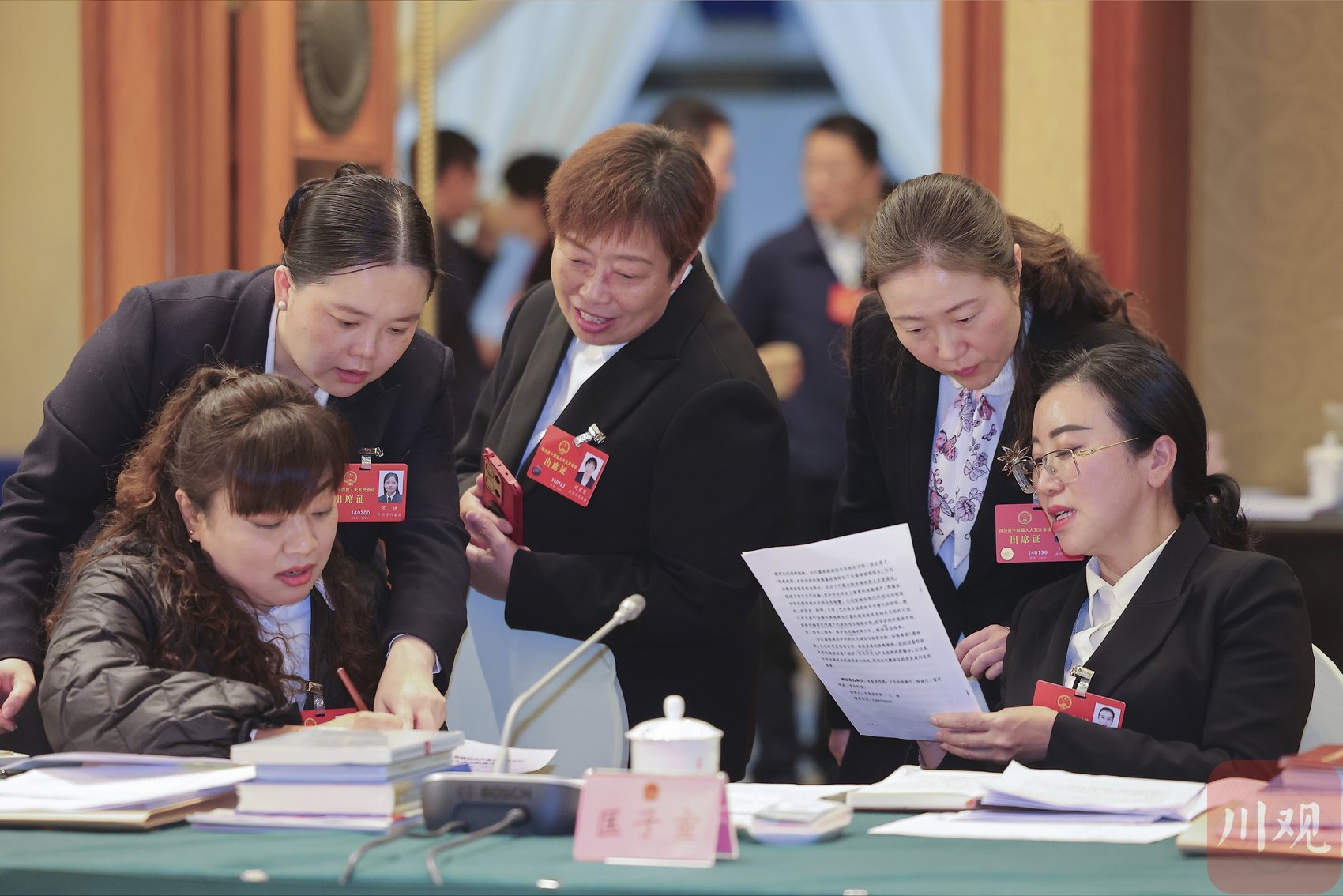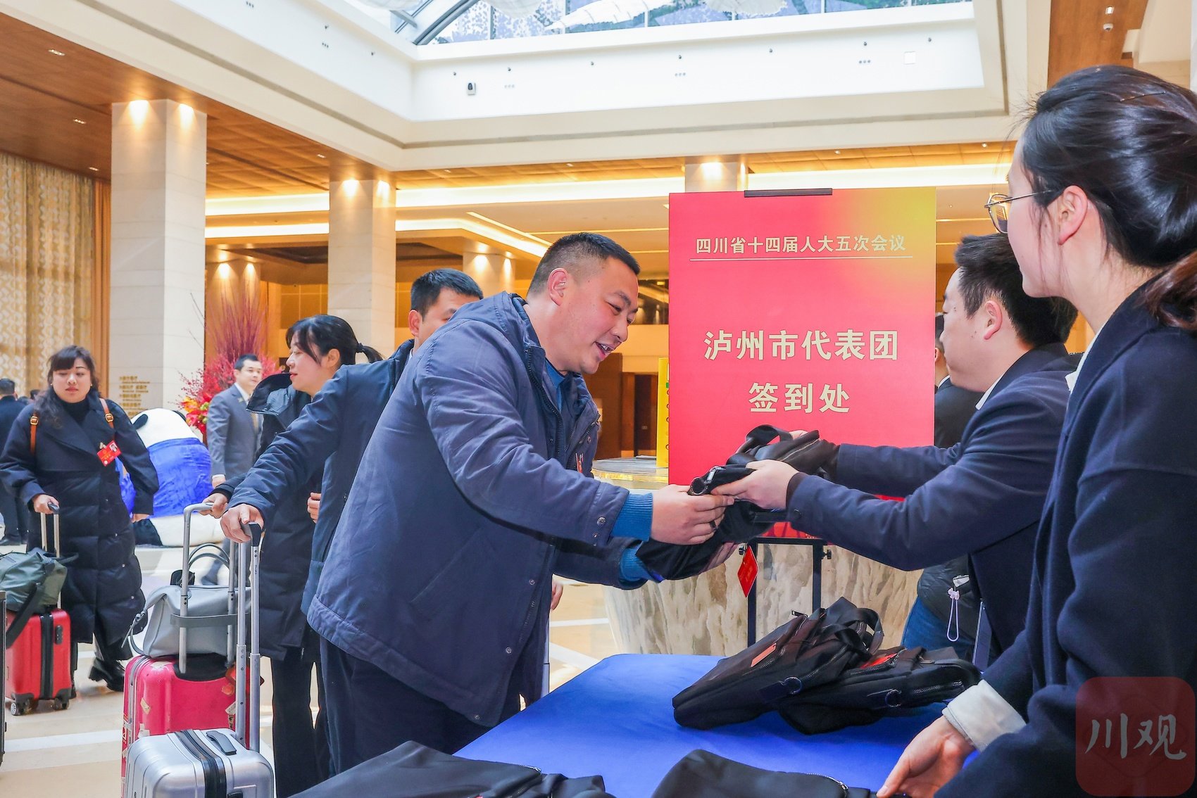 泸州代表团的省人大代表们履行报到手续,领取参会资料。