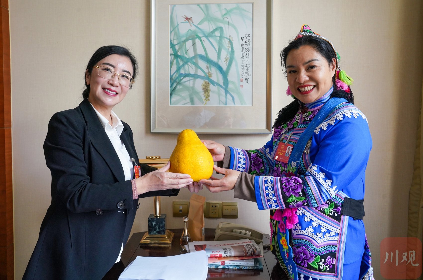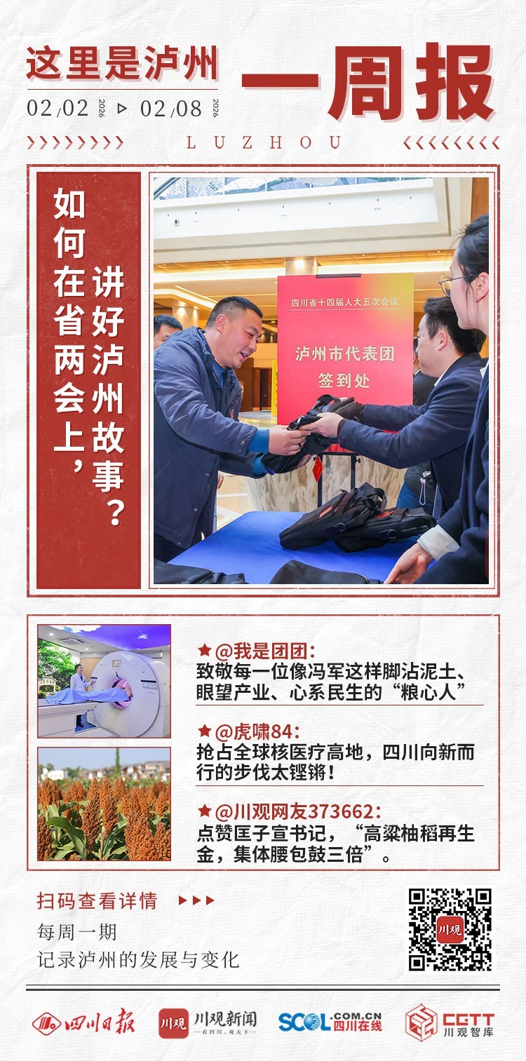报到有开箱特产。2月1日,泸州代表团抵达成都锦江宾馆。记者一见到合江匡子宣代表,就收获1个黄灿灿的真龙柚。过去一年,她发展真龙柚和高粱等产业,村集体经济营收达450亿元,增长了近3倍。冯军也将“实验室”搬到了现场,科普传统糯高粱、杂交高粱、东北高粱、阿根廷高粱的异同,建议推广杂交高粱、提升川酒品质。